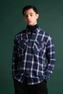 ULTIMATE DOUBLE POCKET FLANNEL SHIRT NAVY WHITE GRID