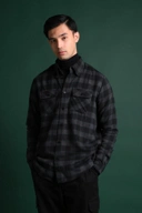 ULTIMATE DOUBLE POCKET FLANNEL SHIRT BLACK GREY GRID