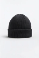 - Ribbed beanie with turn up edge.