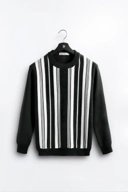 - Jaket rajut bermotif garis