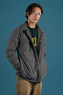 Jacket with padded interior. Collared jacket with long sleeves and buttoned cuffs. Featuring chest patch pockets with flaps. Front snap-button fastening.