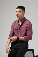 - Kombinasi benang plum dan putih dalam anyaman calvary membuat efek twotone pada warna.