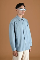 PSDT47-DREXEL OVERSIZED SHIRT BASIC COLLAR FADED BLUE