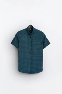 PSCR66-GINGHAM SHORT SLEEVE SHIRT PREPP SCOOTER EDITION CYAN