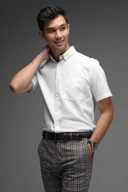 EXETER WHITE BUTTON SHORT SLEEVE SHIRT